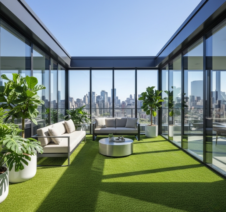 Artificial grass provides a maintenance-free alternative to natural grass, suitable for lawns and sports fields.