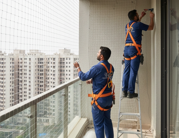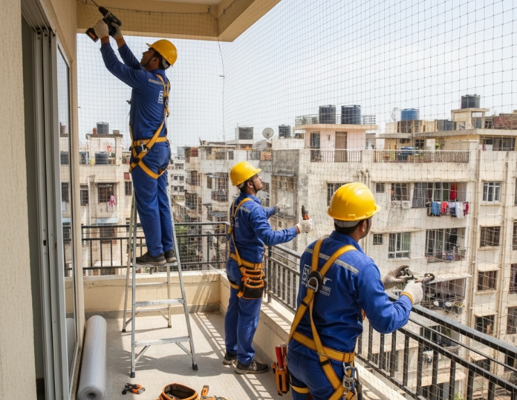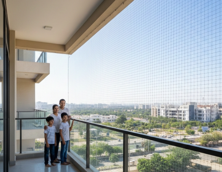 "Balcony safety nets installed for child safety. The team understood our concerns and suggested the best solution. The installation is neat and doesn't obstruct the view. Feel much safer now with small children at home."